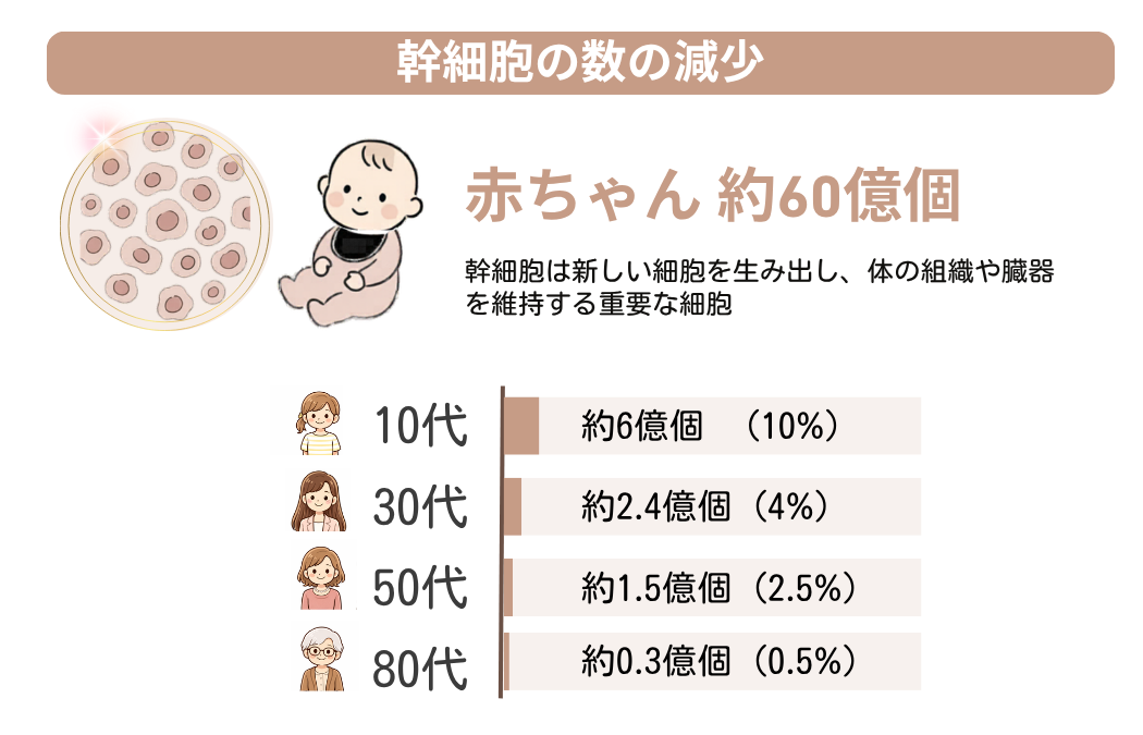 その正体は、あなたの内側で静かに進んでいる「幹細胞の減少」。