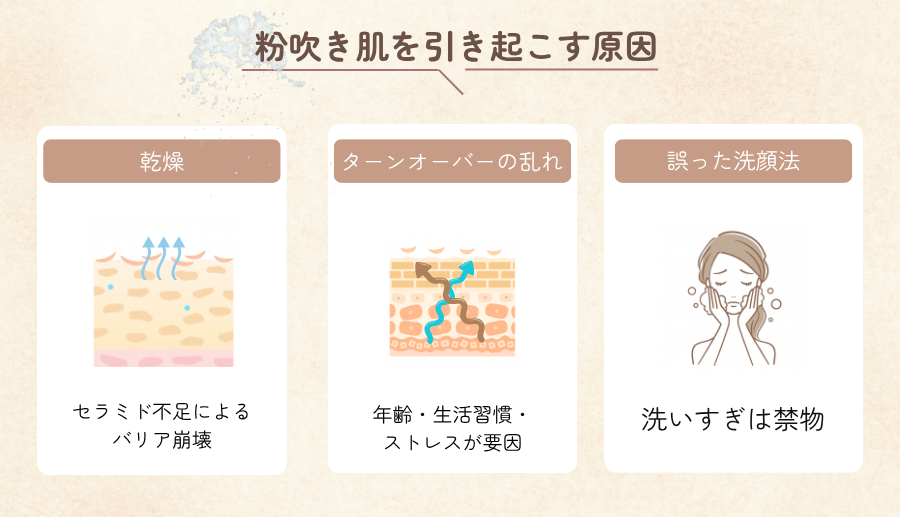 粉吹き肌を引き起こす原因は、主に3つあります。