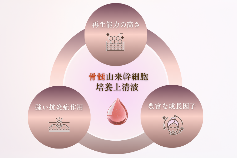 大阪大学大学院の研究によると、骨髄由来幹細胞の培養上清液には、 成長因子やサイトカイン、エクソソームなどが非常に豊富に含まれています。