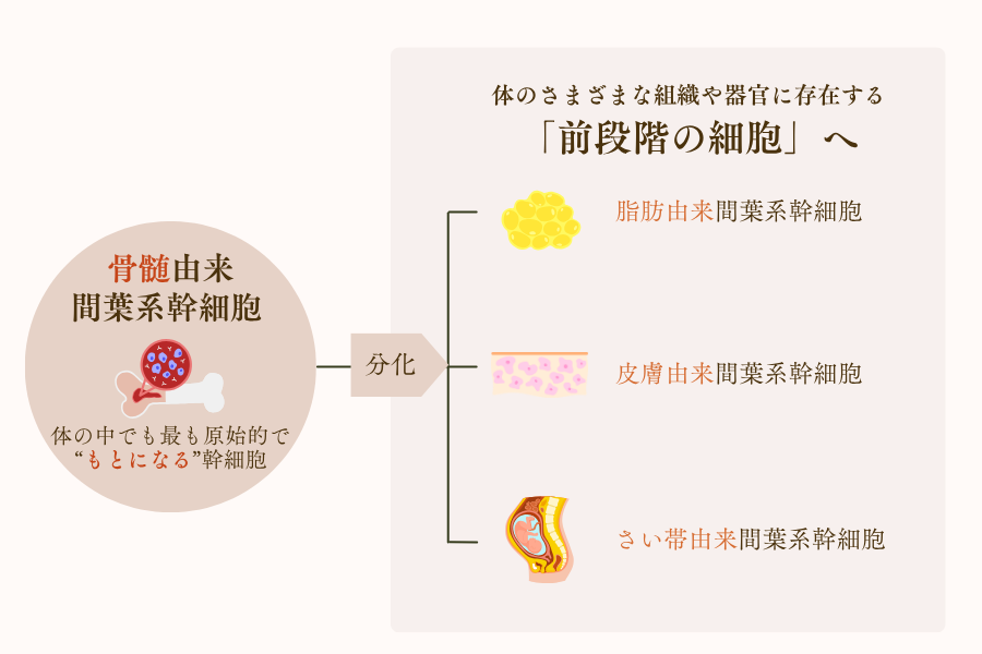 骨髄由来幹細胞は、体内で最も原始的な「多能性幹細胞」に近い性質を持っています。